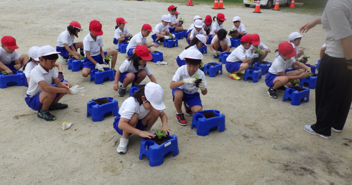 9月19日(金)2時間目に冬野菜の苗植えを行いました。 今回は、初めて玉レタスにチャレンジです。 JAの方のお話をしっかりと聞き、土をいれてやさしく苗を植えました。 これから毎日水やりをしてお世話をします。