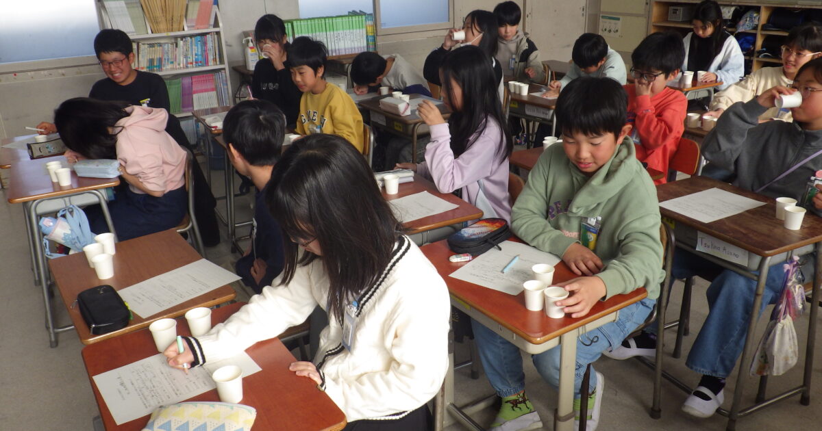 12月上旬に、5年生が栄養教諭による食育の授業で「出汁」について学びました。 かつお節や昆布など、出汁のもととなる食品のにおいを実際に嗅ぎ、それぞれの特徴を感じ取りました。 また、①出汁のみ ②出汁+塩 ③塩のみの3種類 […]