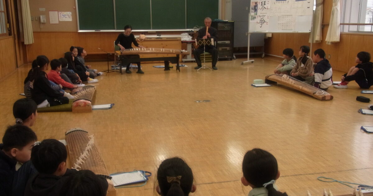 2時間目から4時間目に箏の出前授業がありました。まず箏について、生田流や山田流があること、座り方や爪のあて方、弾き方について教えていただきました。次に尺八について、木管楽器であることや大きさ(55cm)、音の出し方につ […]