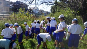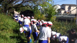 学戸小ブログ 【5年生】田んぼの草取りをしました 2025.10.27 by gakuto002 10月23日(木)に、グラウンド南側にある田んぼの除草を行いました。 5月に田植えを行い、定期的に稲の成長を見守ってきました。 今日は31日の稲刈りに向けて、学年全員で一生懸命草を取りました。