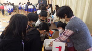 最後に、カロリーを予想し、カロリーの高い順におやつを並びかえる「おやつならびかえゲーム」をしました。子どもたちの自己管理を促し、今後の食育指導や総合の学習に結び付く内容でした。食について楽しく学ぶだけでなく、環境教育やキャリア教育にもつながっていく学習でした。