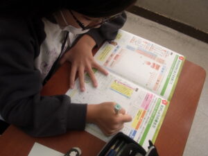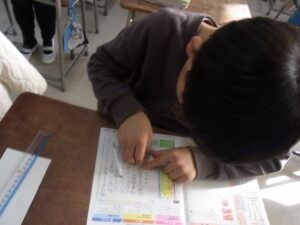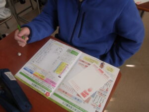 2学期も残り少なくなってきました。子どもたちが、手紙を書くことを経験する機会が少なくなってきているので、手紙の楽しみ、喜びといったことを経験して欲しいという「手紙の書き方体験授業」を利用し、年賀状の書き方を学習しました。郵便局からいただいた年賀状に、来年の馬をデザインしたり、来年の抱負を記入したりしました。子どもたちの思いのこもった年賀状が完成しました。