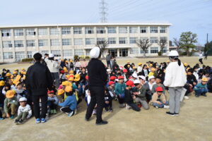 大きな地震が起きた時、大人が一緒だとは限りません。休み時間や通学路、家に一人でいるときに、それは起こるかもしれません。子どもたちが自分の命を自分で守れるよう、避難訓練を重ねたいと思います。