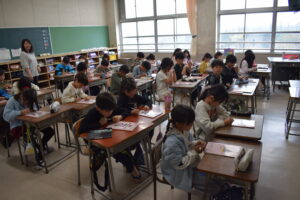 真新しい漢字ドリルや計算ドリルに、慎重に名前を書いている姿が見られました。